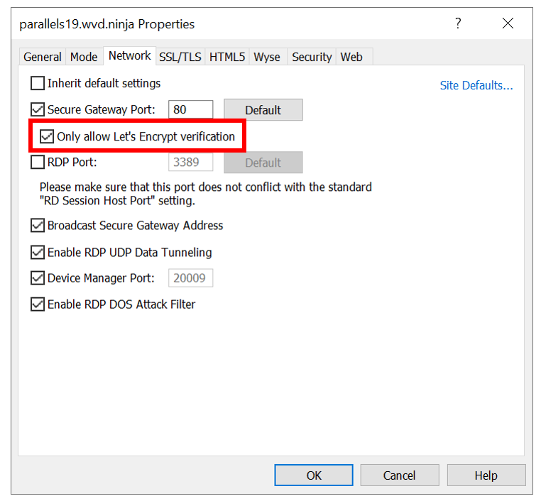 First, to make sure that only Let’s Encrypt is able to access port 80 on your Secure Gateway, configure the network properties of the Secure Gateway as shown below.